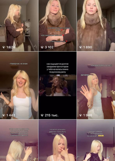 промт 2: на основе увиденного формата видео, шутки, типажа девушки и подачи, найди похожих инфлюенсеров как ANYA RU