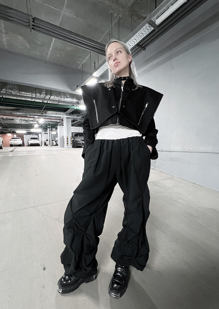 Цель модуля: самостоятельно изготовленное изделие на основе индивидуального задания — комбинации данных (ассортимент, материал, форма, силуэт, покрой рукава). В рамках данного проекта был изготовлен тренч-трансформер с тремя вариантами ношения.