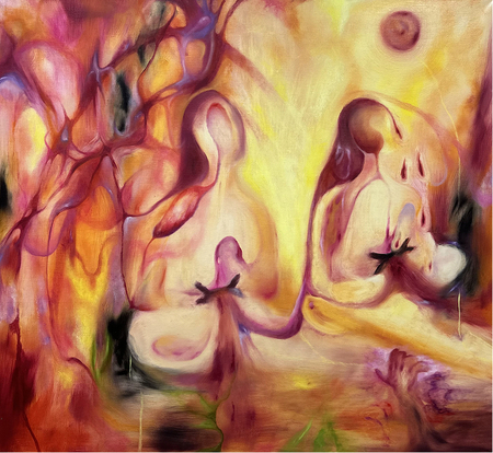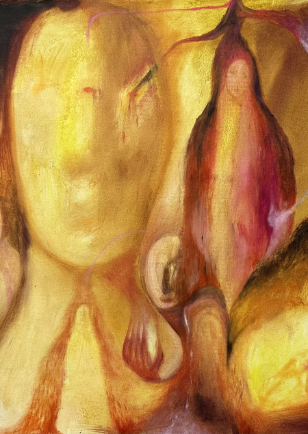 Без названия 2025 холст, масло, 60×80 см и «Собачья болезнь» 2025 холст, масло, 110×120 см
