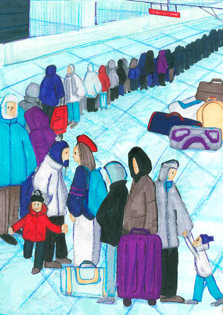 Первый комикс описывает те преграды, которые необходимо преодолеть, чтобы попасть в заветную зону ожидания и впоследствии пройти на борт.