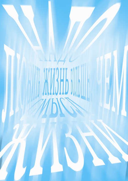За основу плаката я взяла фотографию, сделанную в Зарайске. Я поместила слово жизнь на место окна на фотографии, что позволило предать цитате дополнительный смысл о том, что свет исходит из жизни.