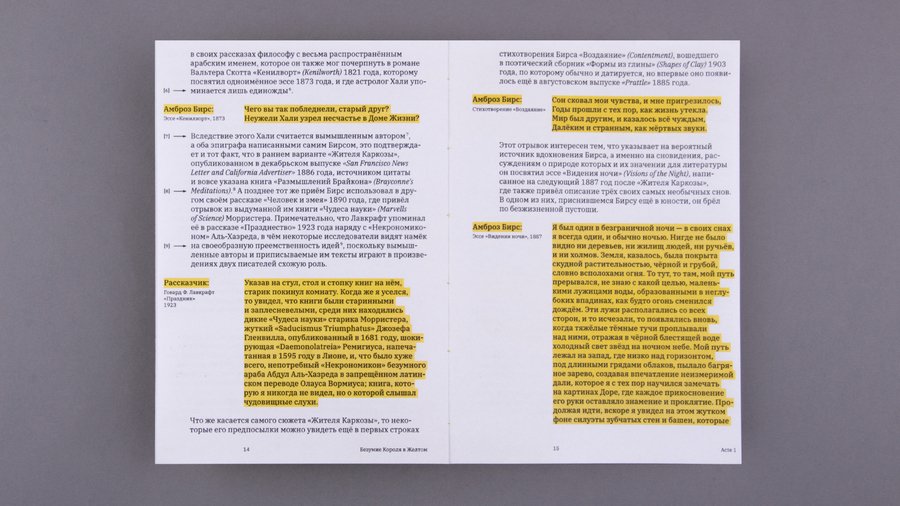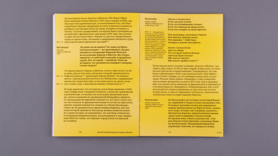 На обложке УФ-печатью прозрачным лаком нанесены строки из оригинальной пьесы, которые можно увидеть только под определенным углом.