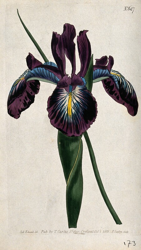 Вильям Кёртис «Орхидея Венерин башмачок; цветущая» ок. 1862 г. Вильям Кёртис «Английский ирис» ок. 1803 г.