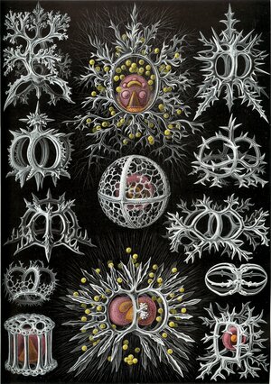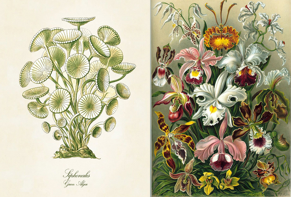 Эрнст Геккель «Радиолярии из надсемейства Stephoidea» 1904 г. Эрнст Геккель «Ацетабулярная ацетабула» 1904 г. Эрнст Геккель «Розовая орхидея» 1904 г.