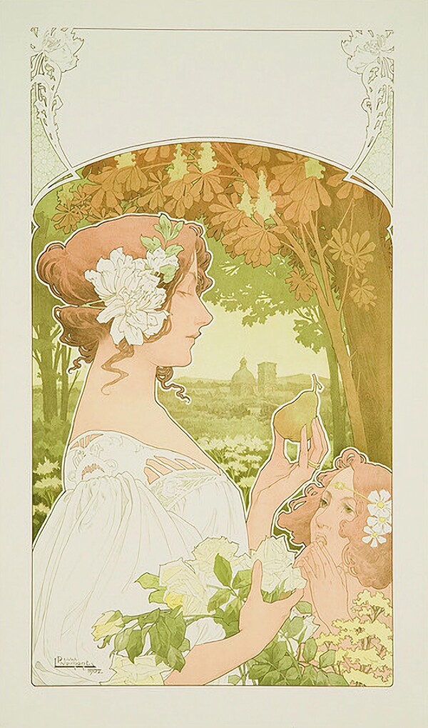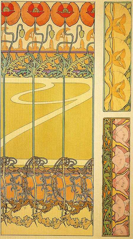 Именно эти категории — ритмичность, структура, симметрия, цикличность — стали иметь значимость для художников западноевропейского модерна, среди которых Альфонс Муха, Эжен Грассе, Морис Верне и другие. Они использовали ботанические мотивы не только как декоративные элементы, но и как символы жизненного процесса, витальности и трансформации.