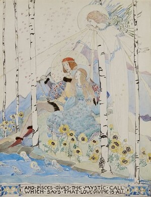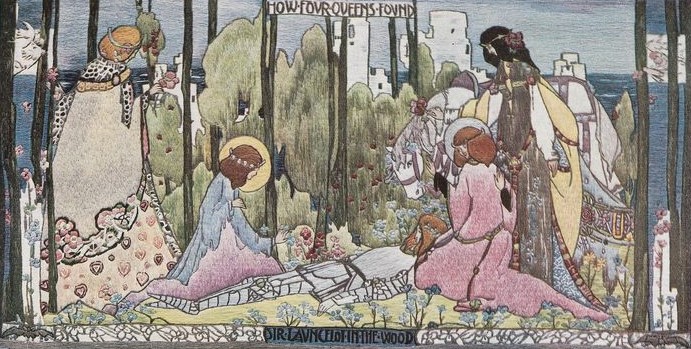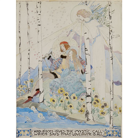 Джесси Мэрион Кинг «Как четыре королевы нашли сэра Ланселота в лесу» ок. 1910 г. Джесси Мэрион Кинг «И рыбы издают мистический зов» ок. 1910 г.