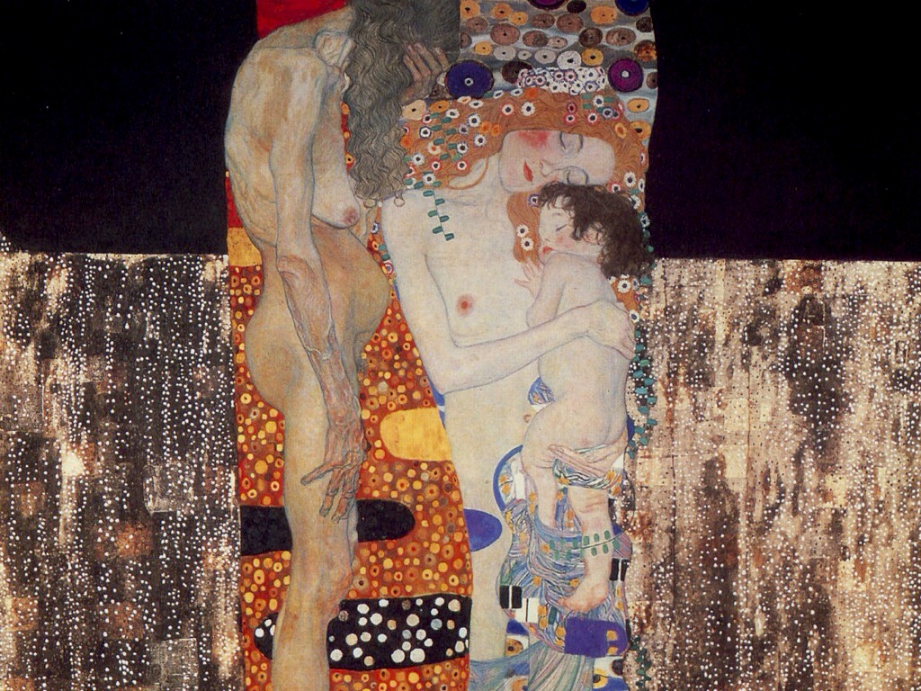 Более светлые и чистые цвета в работе Густава Климта ассоциируются с молодостью. А цветочный венок на голове одной из женщин — символ новой жизни.