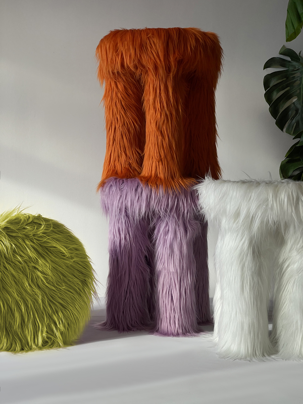В своей практике я стремлюсь облачить обыденные предметы быта в неочевидные современные материалы используя яркую цветовую палитру. Вдохновляясь моим личными воспоминаниями из детства я выбрал яркий искусственный мех для серия стульев Ye-Ty, которая сегодня является основной в моей линейке предметов домашнего декора.