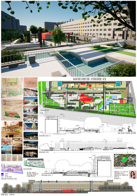 Концепция «студенческий квадрат» несет идею восстановления энергии каждого посещающего его человека. От степени заинтересованности души, человека может посетить нужную ему зону комфорта: кафе, лаунч-зоны, озеро-ручей и вышка на самом здании учреждения, в которой отдохнув и набравшись сил можно было бы приступить к дальнейшим делам!