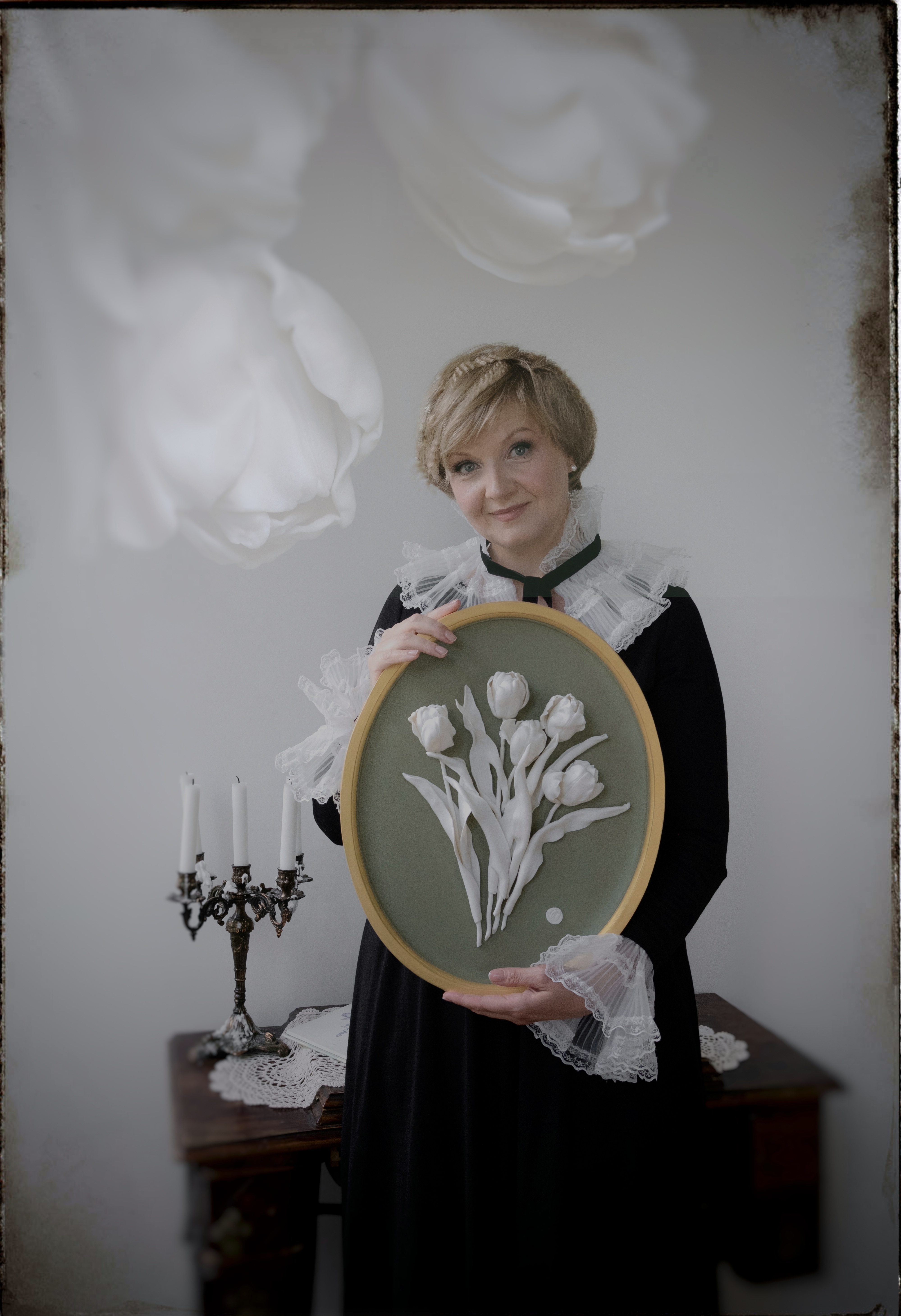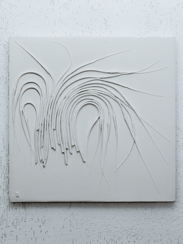 Garlic shoots are one of the most complex, but interesting characters of my bas-reliefs. Their size and shape are unpredictable, depending on the strength of the plant, weather conditions and the degree of its maturity. Therefore, «garlic» bas-reliefs are always different. This panel is made in a minimalist style, the garlic shoots seem to have been created for it. Elegant, textured and self-sufficient. The work is made using the technique of artistic casting on the imprints of living plants. I work intuitively, all my bas-reliefs are improvisation, although well prepared. It’s like jazz!Botanical jazz) It is important for me to show not just the beauty of the moment, but to convey the natural, unique architecture of plants. To arouse interest, make you look at the details, admire the variety of plant forms and simply admire their aesthetic perfection… This is what I always strive for when starting a new work.