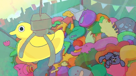 Герой проходит через сюрреалистичные кошмары в теле игрушки-брелока, переживая различные неурядицы.