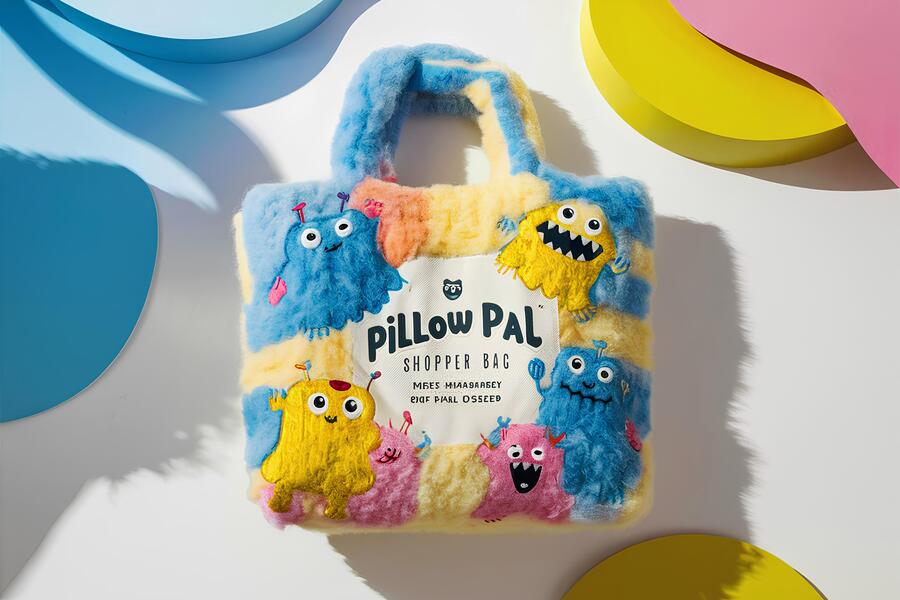 /imagine prompt: generate a mockup of minimalistic fluffy and woolly shopper bag on a white background for the «pillow pal» company which help children to do…