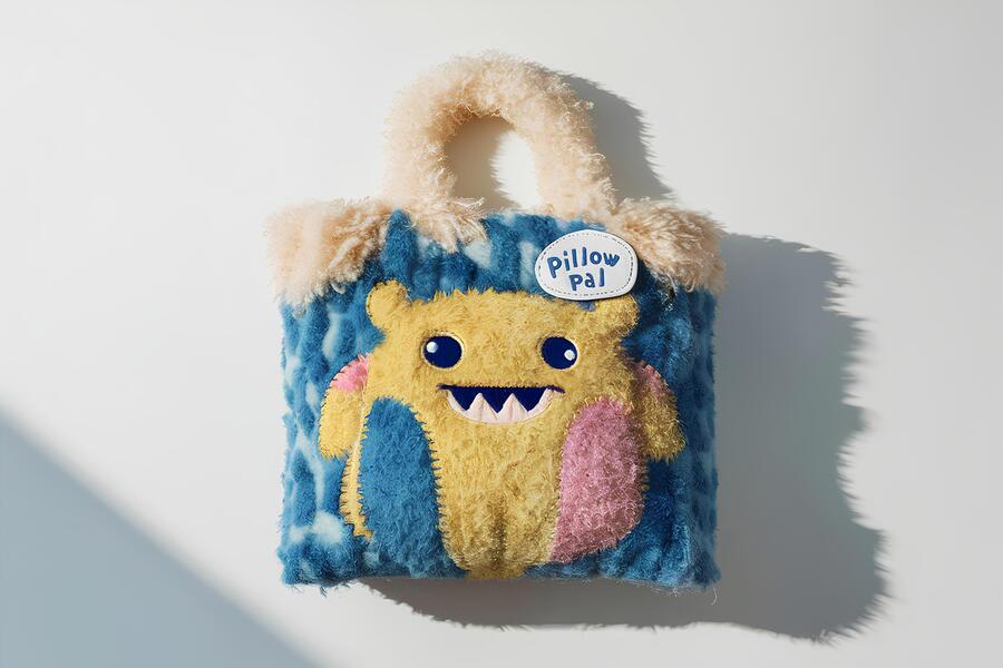 Кроме того, сумки, как часть айдентики, были созданы с помощью инструмента ideogram, чтобы обеспечить согласованность стиля использовалась та же цветовая палитра и текстуры. Полный промпты к генерациям: 1 /imagine prompt: A vibrant mockup of a fluffy and woolly shopper bag designed for the «Pillow Pal» company. It is placed on a white background, showing the soft blue, yellow, and pink colors that create a sweet vibes. The bag is adorned with playful, friendly monster characters that help children overcome their fears and fall asleep. 2 /imagine prompt: A mockup of a fluffy and woolly «Pillow Pal» shopper bag on a white background. The bag features a cute, cuddly monster design in blues, yellows, and pinks. The bag has a nice appearance, with soft, plush fur, and a stitched-on name tag that reads «Pillow Pal».