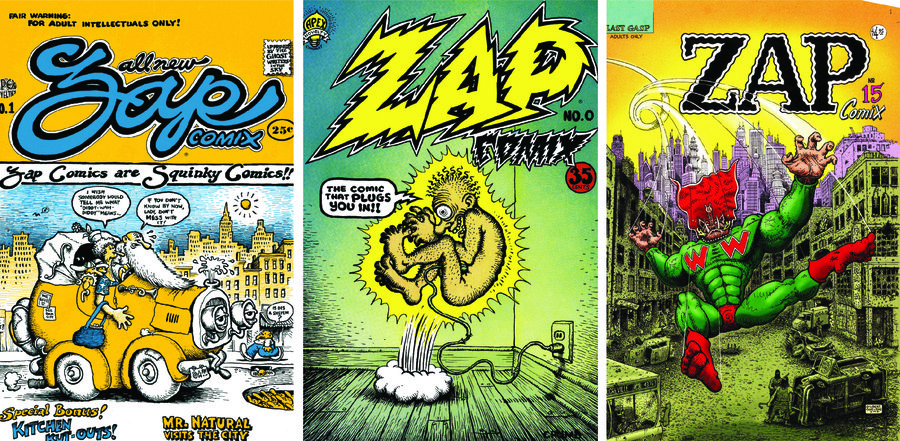 Семь художников Zap Comix: Рик Гриффин, Спейн Родригес, Роберт Уильямс, Р. Крамб, Гилберт Шелтон, С. Клэй Уилсон и Виктор Москосо