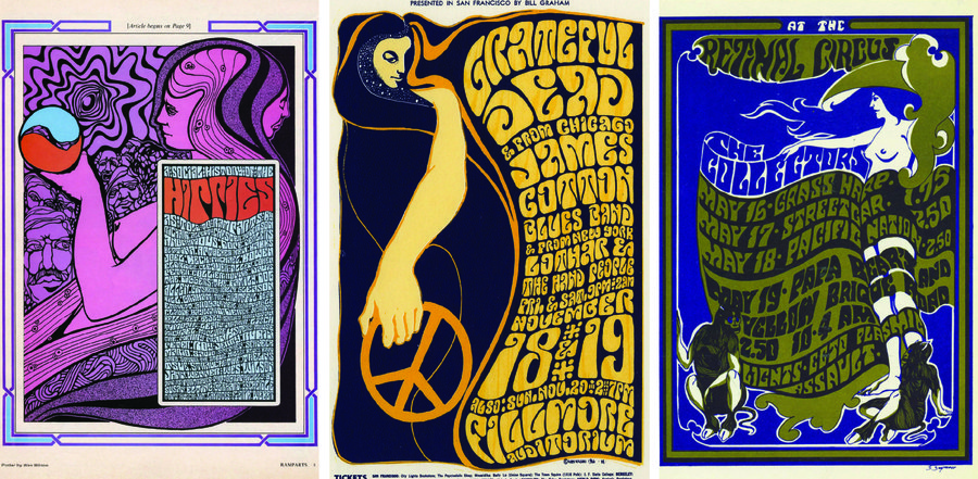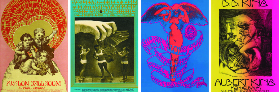 (1-2) Стив Сеймур — постер, 1968 (3) Уэс Вилсон — постер, 1967 (4) Виктор Москосо — постер, 1967