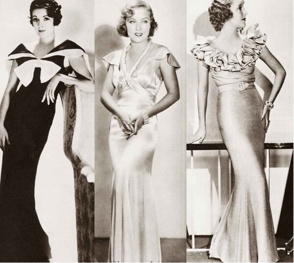 в вечерних платьях 1930-х годов.