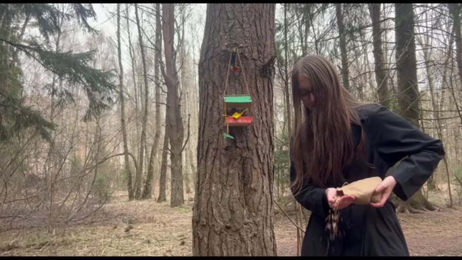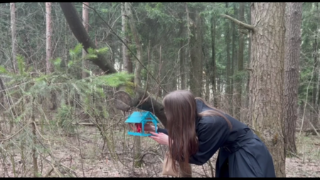 В своей работе я исследую вопрос — а для кого в самом деле эти скворечники созданы? Для птиц или для людей? Героиня проекта ходит по лесу и заселяет скворечники самостоятельно, чтобы они обрели ценность.