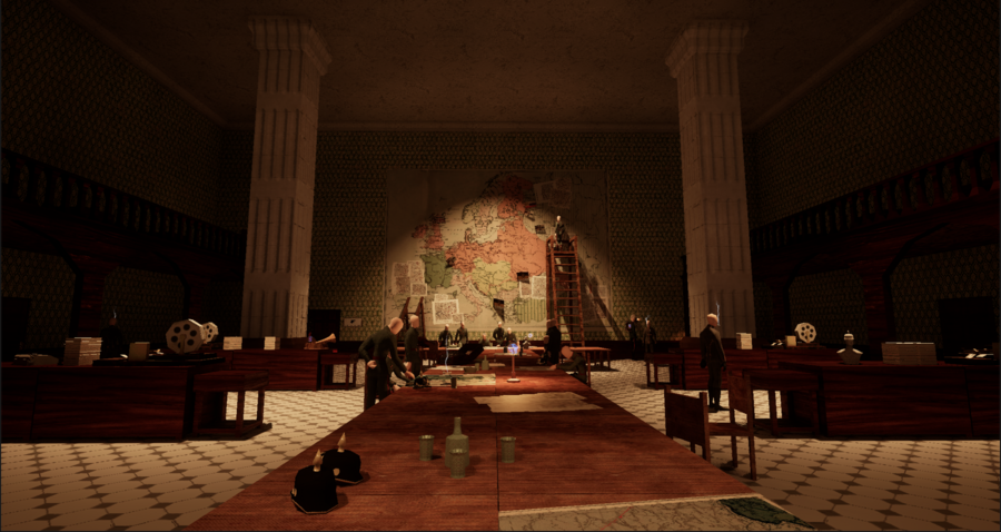 Грозное здание управления немецкой разведки является игровым хабом. В нем происходит выбор заданий и отображаются последствия действий игрока после завершения миссий.