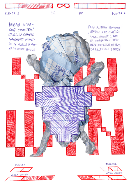 Метафорой для этой серии стали смятые бумажки со сплетнями, которые часто можно увидеть в школах. Я решила сделать из них монстров компьютерной игры
