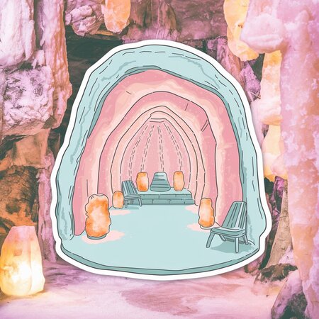 Promt: stickers for a retreat space in a salt cave. Metaphor: a sanctuary of serenity, where the whispers of ancient minerals cradle the soul, and the air is infused with the essence of tranquility, inviting weary minds to dissolve like salt in water, finding clarity and renewal in the depths of stillness.»