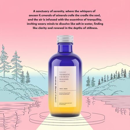 Promt: make a packaging for a retreat space that sells vitamins, colors are pink, yellow, blue, white. the packaging should be on the bottles itself in the form of a mockup. Metaphor: a sanctuary of serenity, where the whispers of ancient minerals cradle the soul, and the air is infused with the essence of tranquility, inviting weary minds to dissolve like salt in water, finding clarity and renewal in the depths of stillness.»
