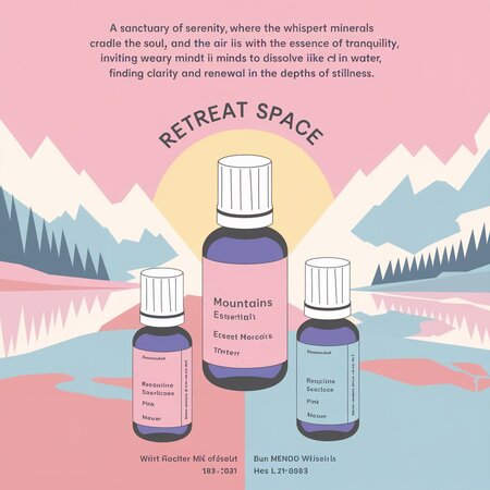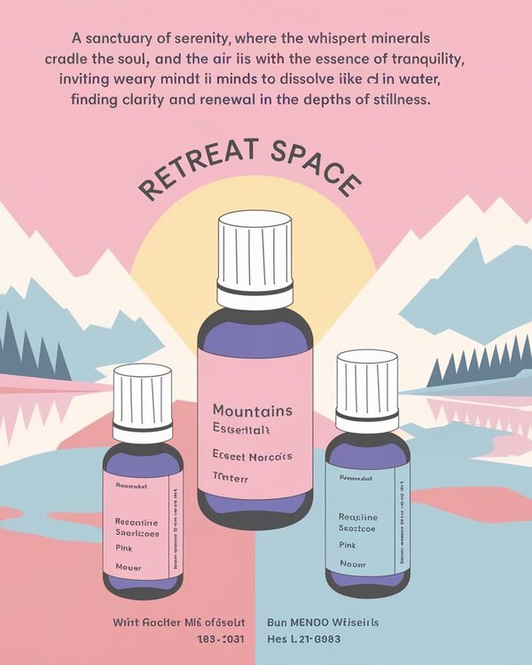 Promt: make advertizing posters for a retreat space, colors are pink, yellow, blue, white. Metaphor: a sanctuary of serenity, where the whispers of ancient minerals cradle the soul, and the air is infused with the essence of tranquility, inviting weary minds to dissolve like salt in water, finding clarity and renewal in the depths of stillness.»