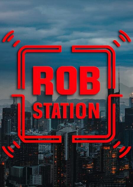 vector simple logo robostation with red letters in the frame with antennas on the white background