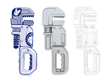 Верный помощник для чрезвычайных ситуаций в космосе — гаченый ключ! Украшен стикерами, которые Бинил нашел, копошась в космо мусоре и его фирменная марка с Земли.