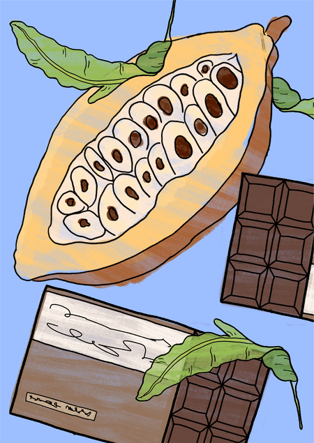 В проекте проиллюстрирован процесс создания шоколадной плитки. Макет разделен на 8 последовательных частей-этапов, через которые проходит сырье прежде чем стать отформованной шоколадной плиткой. Помимо этого приведена статистика потребления шоколада в мире и в России.