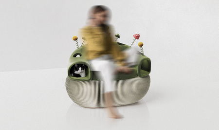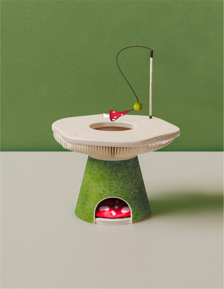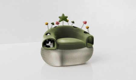 Кресло создано для уютного провождения вместе с котиками. Коты могут разместиться в туннеле, а могут активно играть с элементами пружинками. Также дырочки по всему туннелю служат для интерактивной игры.