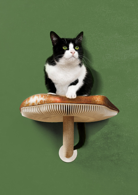 Полки в виде грибов представляют из себя комплекс для лазанья котов по верхам. Можно подобрать индивидуальные чехлы или использовать без мягкой основы.