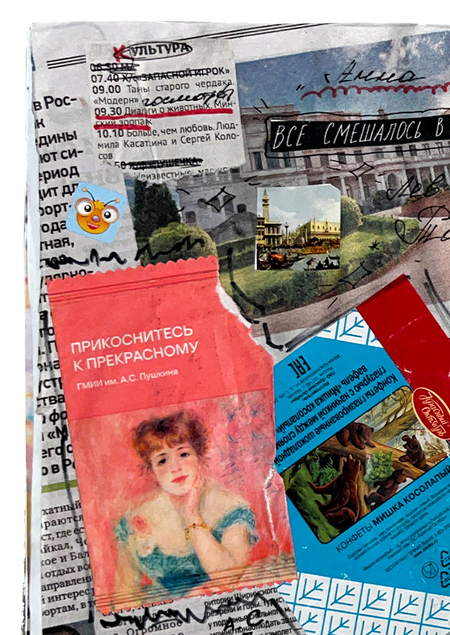 Цель: отразить синкретичность двух миров с помощью рисунков и техники коллажа, подразумевающей совмещение некоторых разных по текстуре, но объединенных общей идеей деталей.