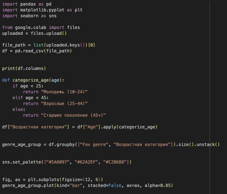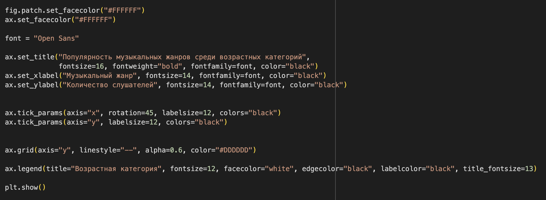1. Столбчатый график позволяет понять, как музыкальные вкусы формируются с возрастом и меняются на протяжении жизни.