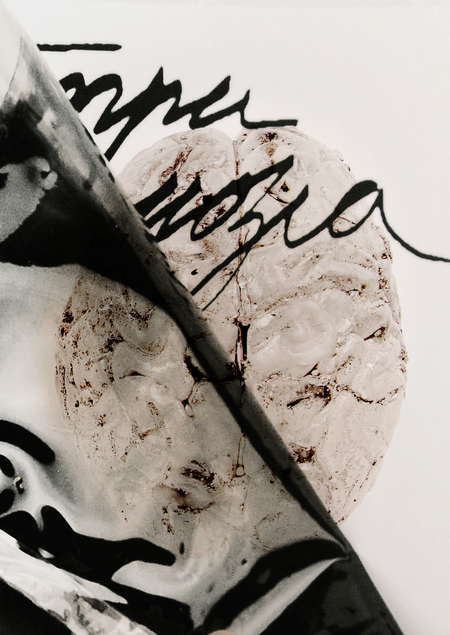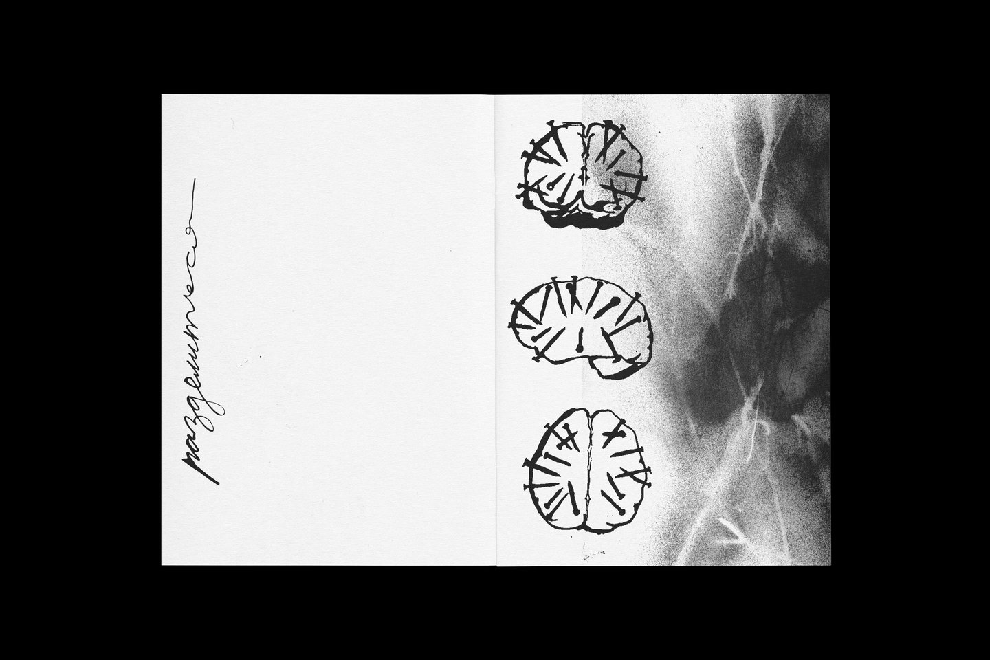 Арт объект «Три мозга» представляет три формы, отлитых с настоящего человеческого мозга. Первый перетянут канатом, второй содержит капли масла, третий наполнен гвоздями. Проект родился из желания разделиться на три сознания, появляющегося из-за давления внешних факторов и большого количества задач.