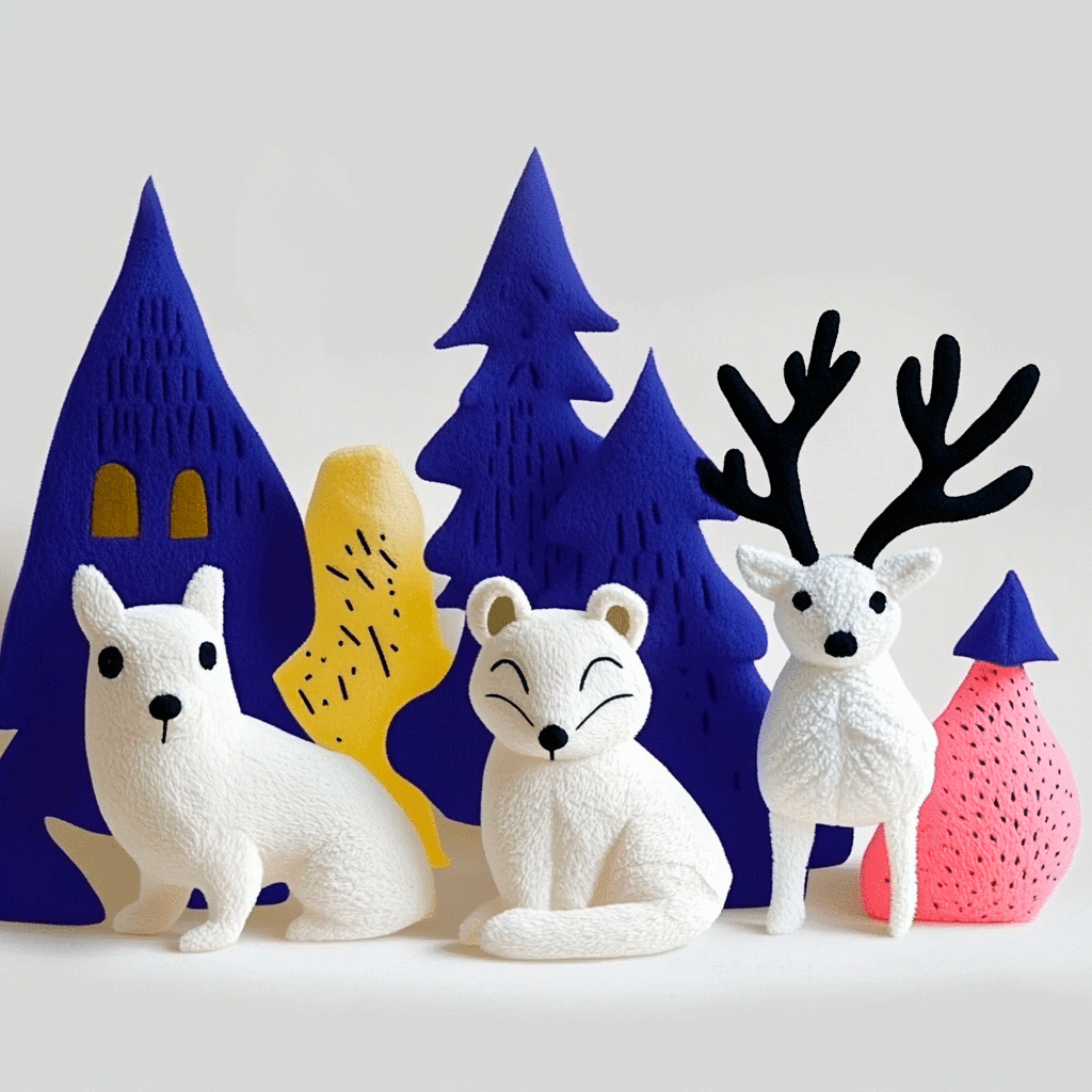 Промпт: Design a series of hand-carved miniature figurines that depict the traditional Nenets way of life, focusing on reindeer herding and sleds
