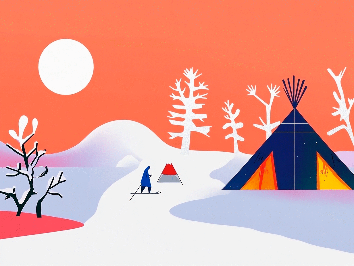 Design the exterior of a unique souvenir shop called 'Heart of the North', inspired by the breathtaking landscapes and rich culture of the Yamal Peninsula. The shop’s exterior should reflect the spirit of the Arctic and its traditions, while also being visually appealing and inviting to customers. cosy, minimalistic