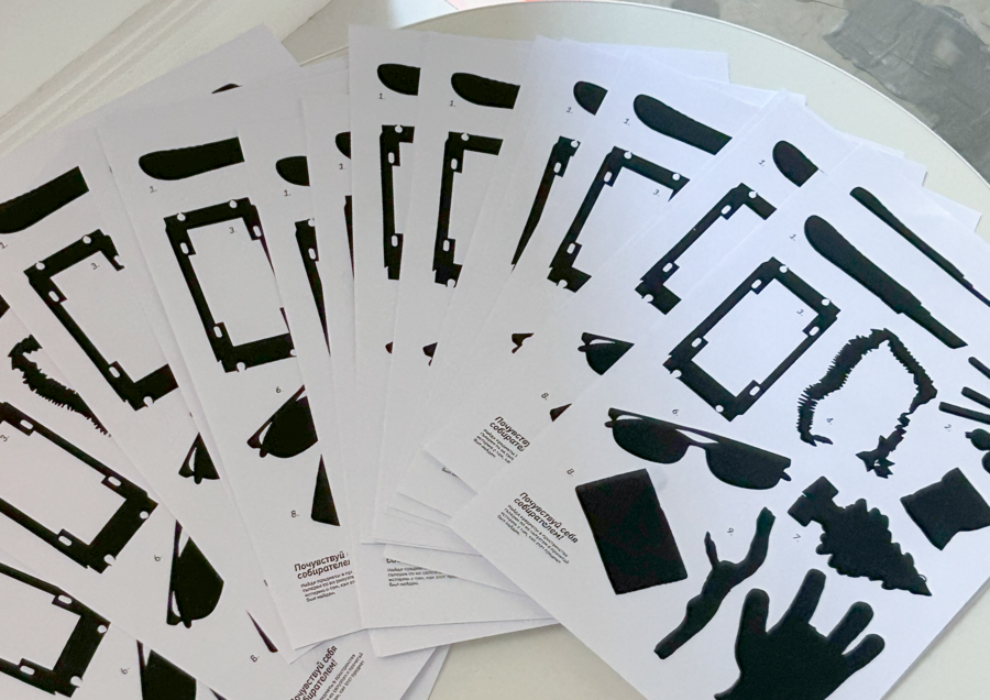 Также посетители выставки вживались в роль собирателей и искали объекты, разбросанные по выставочному пространству, по силуэтам. Каждый такой объект сопровождался историей его нахождения и короткой информацией о координатах и весе.