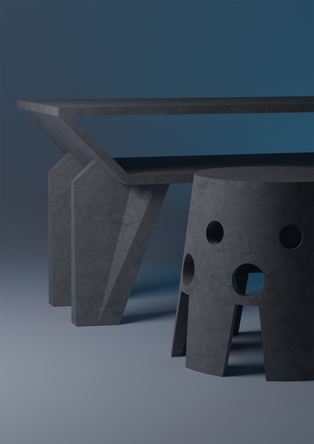 Уменьшенное до размеров кофейного столика и табурета здание позволяет совместить два разных времени (настоящее и советское) в вечности с помощью конкретного образа, расположенного в пространстве своей квартиры/дома.