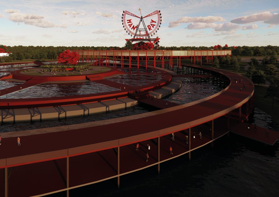 Парковое пространство, вдохновлённое творчеством Ман Рэя, — это место, где реальность растворяется в воображении, а привычные формы теряют своё значение, чтобы стать чем-то новым, незнакомым и завораживающим