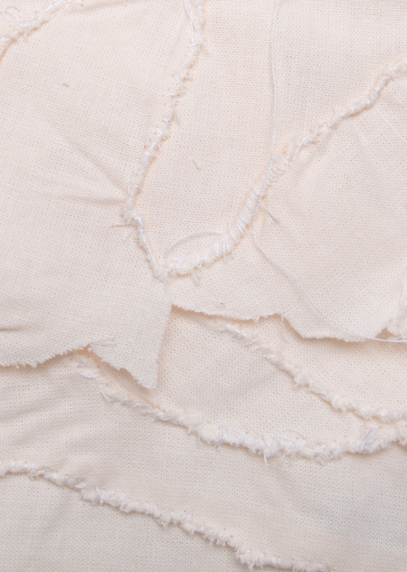 Первая часть проекта — книга, сшитая из лоскутов ткани, которые в данном случае обозначают тело женщины, восстановленное после разорвавших его на части директив. Ткань повторяет части моего тела по форме и размеру. Они распадаются по линиям сгиба и драпировки, которые появились во время создания «отпечатка» тела. Обложка книги — «отпечаток» спины, страницы сшиваются по линии позвоночника. Двойное послание разрушает женщину и лишает ее возможности вернуться к изначальой не травмированной целостности. Так и возникает образ тела — разорванного противоречивыми посланиями семьи и общества, но все-таки собранного обратно. В процессе этой реставрации, я осознаю, что пересобираю не то, что было раньше, но нечто новое и иное, что может существовать и осознавать себя вне директив, несмотря на их очевидный ущерб.