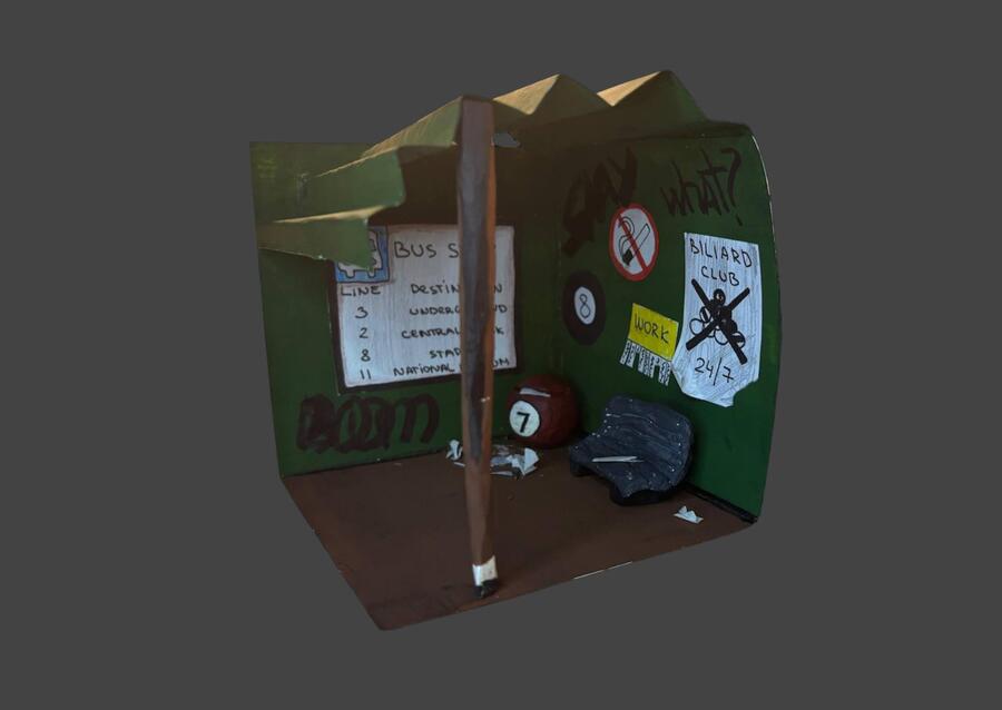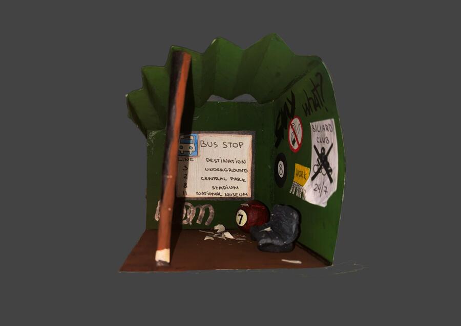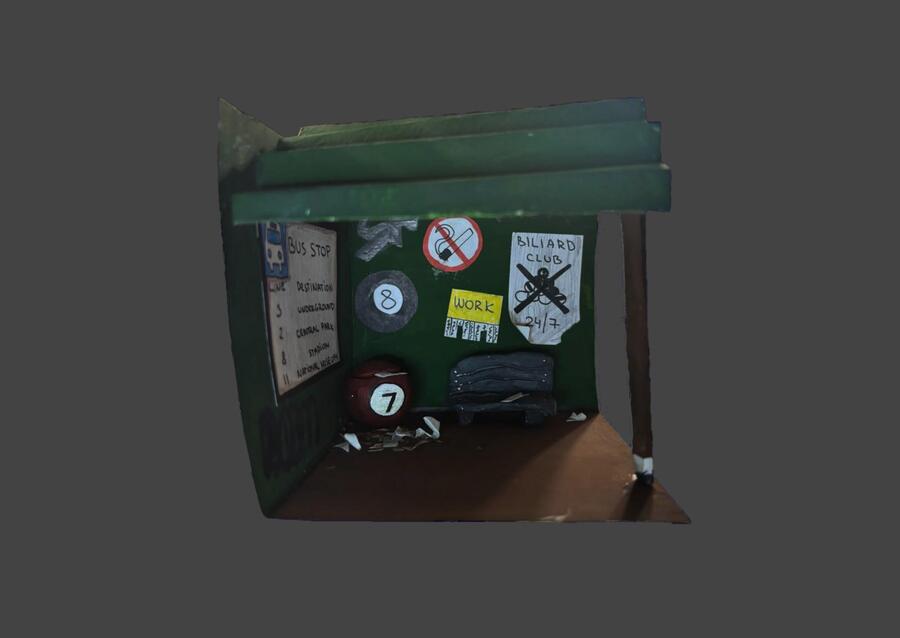 Тематическая автобусная остановка, сделанная из различных материалов, помогает лучше ощутить атмосферу вымышленного мира