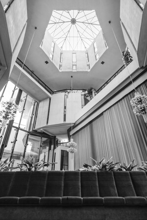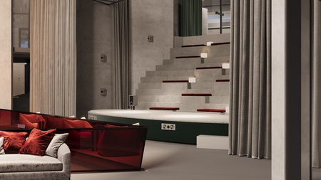 Необыкновенно спроектированное здание санатория само по себе имеет выразительный образ, обладает большим количеством выступов, внутренних балкончиков, подиумов и нестандартных окон. Именно поэтому сделать выбор в пользу интерьерного стиля, направленного на подчеркивание архитектурных особенностей здания, является наиболее актуальным решением.