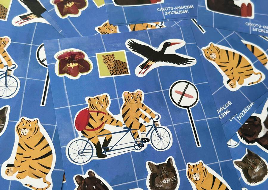 Проект дополняет мерч для заповедника: стикерпак, мягкие игрушки, значки, бутылочка, пенал