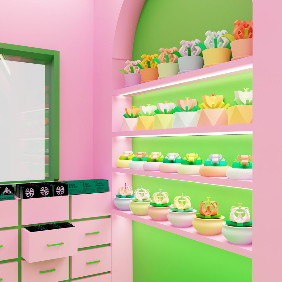 Под стеклом — фирменный комплекс теплиц компании glyftka, где каждый может увидеть разнообразие шрифтов, растущих на грядках и приобрести всё необходимое для их выращивания в магазине. Комплекс расположен на склоне холма для учёта особенностей каждого вида растений, а именно освещение и влажность