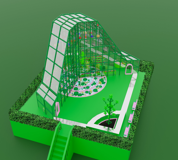 ТЕПЛИЦА 2Х Самая большая теплица из всех трёх, расположена в низшей части комплекса. Состоит из двух частей соединённых переходом. Растения здесь любят тень и высокую влажность. На территории обустроена интерактивная зона, где посетители могут попробовать посадить что-то своими руками.