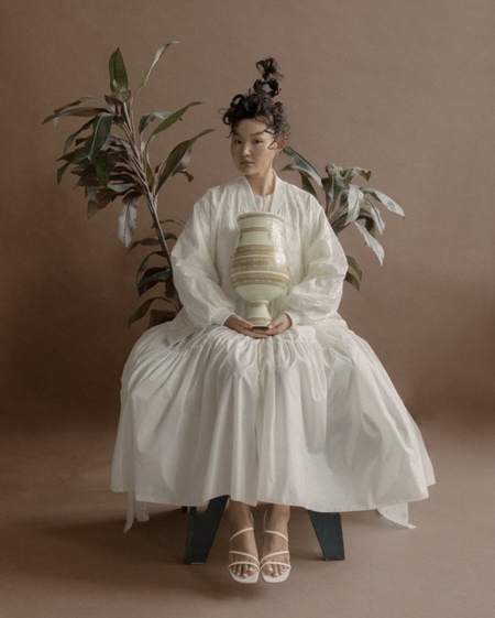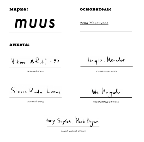 «Одежда Muus — это привычные нам вещи вроде топов, брюк, юбок и платьев, но всегда с необычными деталями. Если блуза, то с шелковыми задрапированными рукавами, если брюки, то с воланом, если платье — то из комбинированных материалов».