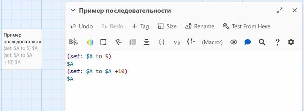 (set: $A to 5) $A (set: $A to $A +10) $A