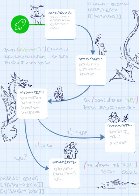 Сейчас вы уже можете создать сюжетную игру с разветвлённой структурой и значимыми для игрока выборами и протестировать её. Рассмотрим логику посложнее: как создавать открывающийся текст внутри экранов, задавать и пользоваться переменными.