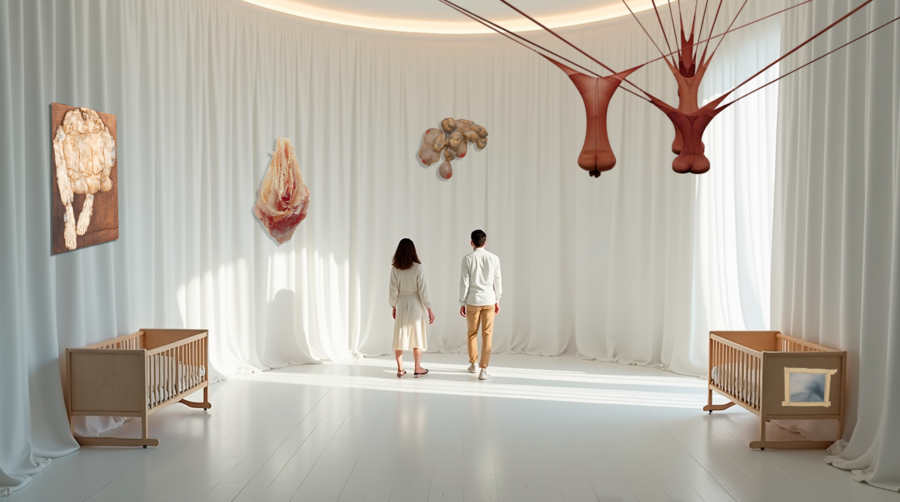 Выставка приглашает взглянуть за пелену мифов о материнсвтве и репрзентации женского тела. Здесь материнское тело предстает не просто биологическим фактом, а сложным, постоянно трансформирующимся ландшафтом, наполненным физическими, эмоциональными и психологическими переменами. Работы художниц, представленные на выставке, используют разнообразные медиумы, чтобы исследовать то, как сами женщины переосмысляют свои социальные роли и место в мире до и после рождения ребенка, предлагая многогранный взгляд на этот фундаментальный опыт.