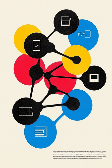 3. A minimalist graphic poster with interlocking circular shapes in black, red, blue, and yellow, symbolizing connection and community. Central text reads: 'Unlock New Possibilities.' Subtext below says: 'Join the sharing economy, borrow what you need.' The circular shapes contain icons hinting at various items like electronics, sports gear, and art supplies. Clean and balanced design with a welcoming, inclusive feel.(+3 изображения)